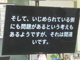 「どんな理由があってもいじめはいけない」「いじめられる方にも問題があるという考えは間違えている」「温かい思いやりあふれる学校をみんなで作っていこう」心に残る言葉がたくさんあり、いじめについて深く考える良い時間になりました。最後に、全員が自分なりのいじめ撲滅宣言を書きました。木曜以降、2年・3年の教室にも来て話をしてくれる予定です。